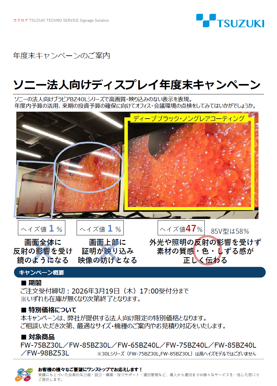 ソニーの法人向けブラビアBZ40Lシリーズで高画質・映り込みの無い表示を表現。