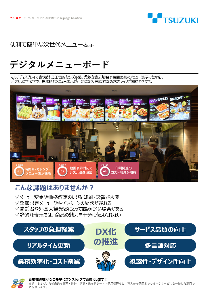 便利で簡単なメニュー表示!デジタルにすることで、飛躍的な訴求力アップを期待可能