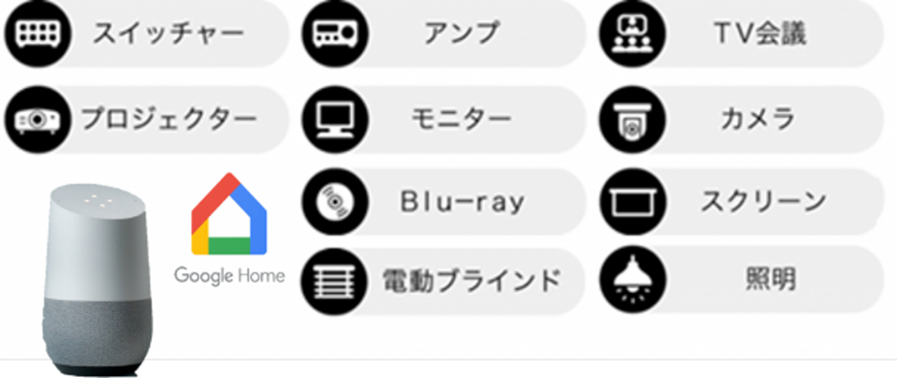 例えば、「OK Google、システム起動」と言うだけで、機器の電源が入り、電動スクリーンが下がり、プロジェクターで投影するのに最適な明るさの照明にするなど、プレゼンテーションに最適な環境をすぐに準備することが可能です。